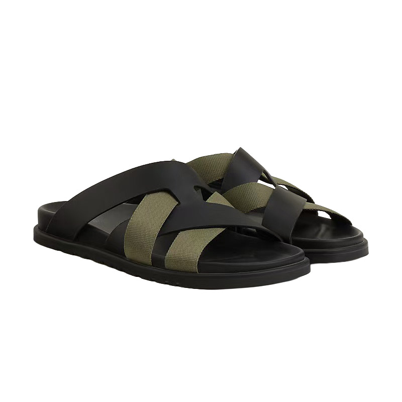 エルメス サンダル カジミール ブラック/ヴェール・ツンドラ